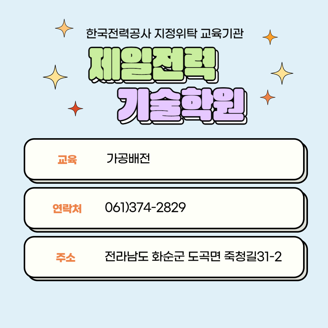 전남 화순 제일전력학원에서 준비 가능합니다!
