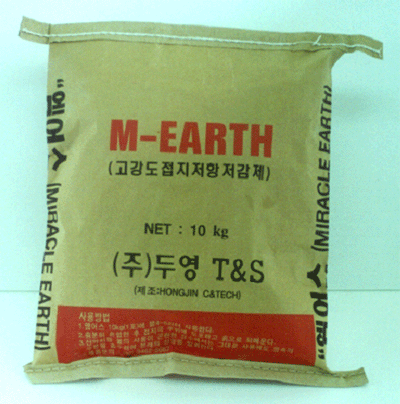 또한 환경오염을 유발하기도 하기 때문에 사용에 제한을 받고 있다. 이전에 사용된 제품으로서는 염(소금), 황산암모니아, 탄산소다, 카본분말, 벨라이트, 벤토나이트등이 사용되어 왔다. 또한 최근까지도 사용되는 제품의 종류로서는 화이트아스론(White Earthron), 치코겔(반수석고), 케미어스(변성비소수지), 어스다인(이하 日産), 아스판, 감마론, 어스굿(이하 國産), 어스겔( Earth Gel,濠洲産)등 이있다.