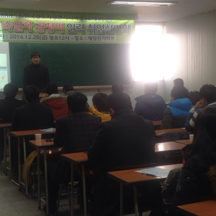 안녕하세요 2014년12/26일(금) 12시에 KTX 고속열차 경정비 인력 취업설명회가 있었습니다.