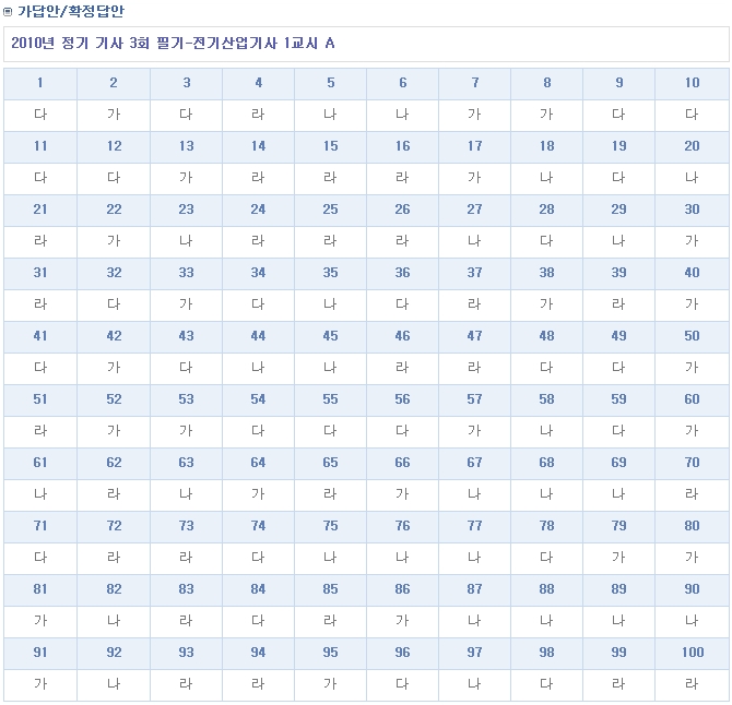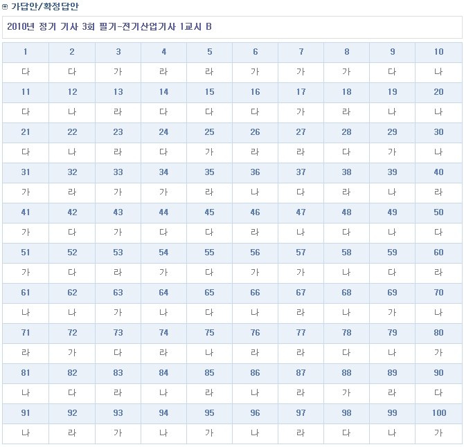 2010년 3회 전기산업기사 필기 가답안 (A,B형)